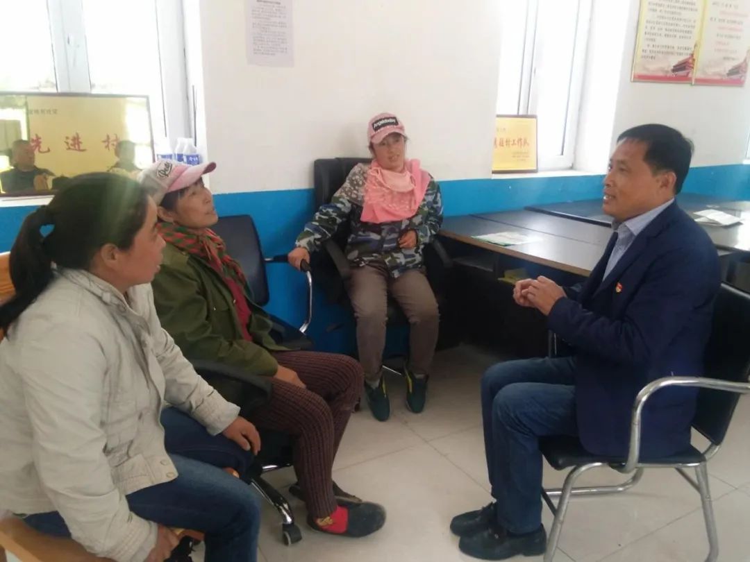 王剛(右一)與村民認(rèn)真研討致富辦法