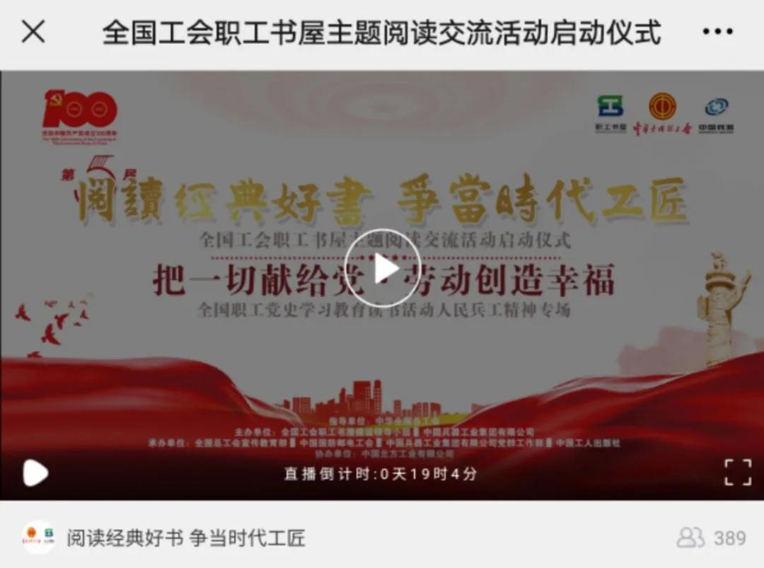 今天(4月23日)下午 15:00第五屆“閱讀經(jīng)典好書 爭當時代工匠”全國工會職工書屋主題閱讀交流活動啟動儀式暨“把一切獻給黨·勞動創(chuàng)造幸?!?/strong>全國職工黨史學習教育讀書活動人民兵工精神專場隆重開啟!
