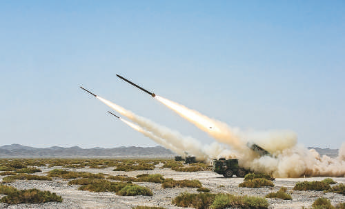 ▲某集團(tuán)軍炮兵旅遠(yuǎn)火營(yíng)使用遠(yuǎn)程多管火箭炮進(jìn)行實(shí)戰(zhàn)化訓(xùn)練