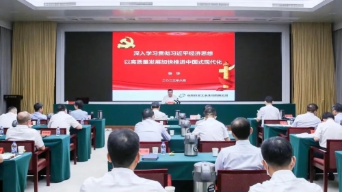 為深入學(xué)習(xí)貫徹習(xí)近平新時(shí)代中國特色社會(huì)主義思想,全面貫徹落實(shí)黨的二十大精神,推動(dòng)全集團(tuán)主題教育走深走實(shí),根據(jù)中國兵器工業(yè)集團(tuán)有限公司黨組主題教育專題黨課總體安排,6月21日,集團(tuán)公司黨組副書記、董事周艦,黨組成員、總會(huì)計(jì)師張華分別以《學(xué)思想強(qiáng)黨性重實(shí)踐建新功,深入貫徹落實(shí)新時(shí)代黨的組織路線,為建設(shè)具有全球競(jìng)爭(zhēng)力的世界一流集團(tuán)公司提供堅(jiān)強(qiáng)組織保障》和《深入學(xué)習(xí)貫徹習(xí)近平經(jīng)濟(jì)思想,以高質(zhì)量發(fā)展加快推進(jìn)中國式現(xiàn)代化》為題,向全系統(tǒng)講授主題教育專題黨課。中央第四十三指導(dǎo)組成員李軍波到會(huì)指導(dǎo)。