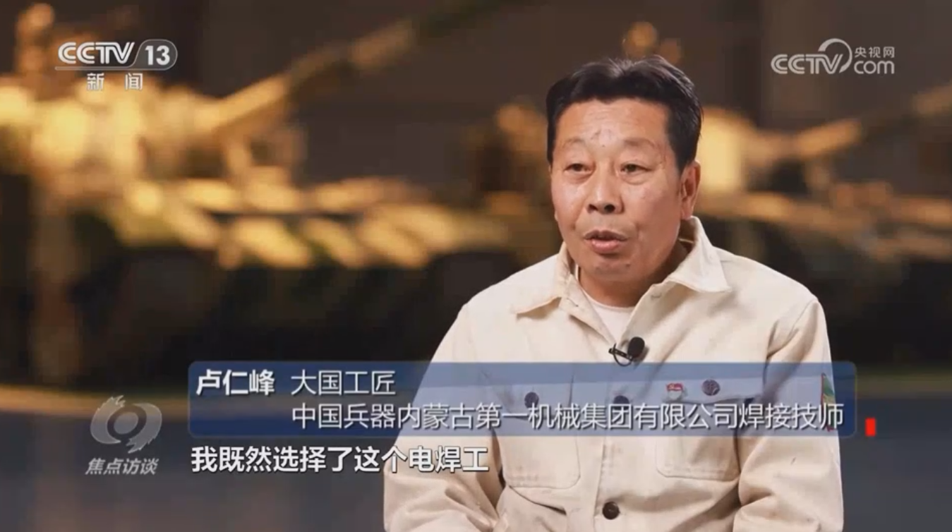 4月30日,央視《焦點訪談》欄目推出系列節(jié)目《勞動者追夢人》,聚焦各行各業(yè)的勞動者和他們的精神力量。節(jié)目以中國兵器工業(yè)集團一機集團高級焊接技師盧仁峰開篇,講述了他用一只有力的焊工之手,鑄造大國重器匠心追夢、用技能報國的故事。國之重器,始于匠心,惟匠心以致遠?!皥?zhí)著專注、精益求精、一絲不茍、追求卓越”概括了工匠精神的深刻內(nèi)涵。